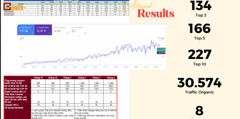 - Traffic: Tăng trưởng đạt mốc 35.000+ Organic Traffic/tháng.